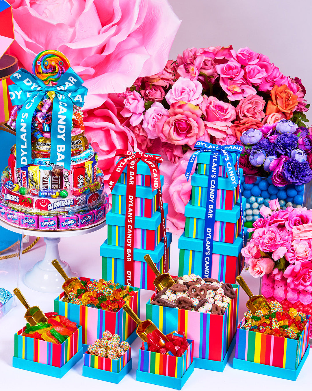 This over-the-top stack of presents includes something for everyone! Our new and improved towers have double the variety of candies per tier and function as a fabulous centerpiece or DIY candy buffet.
