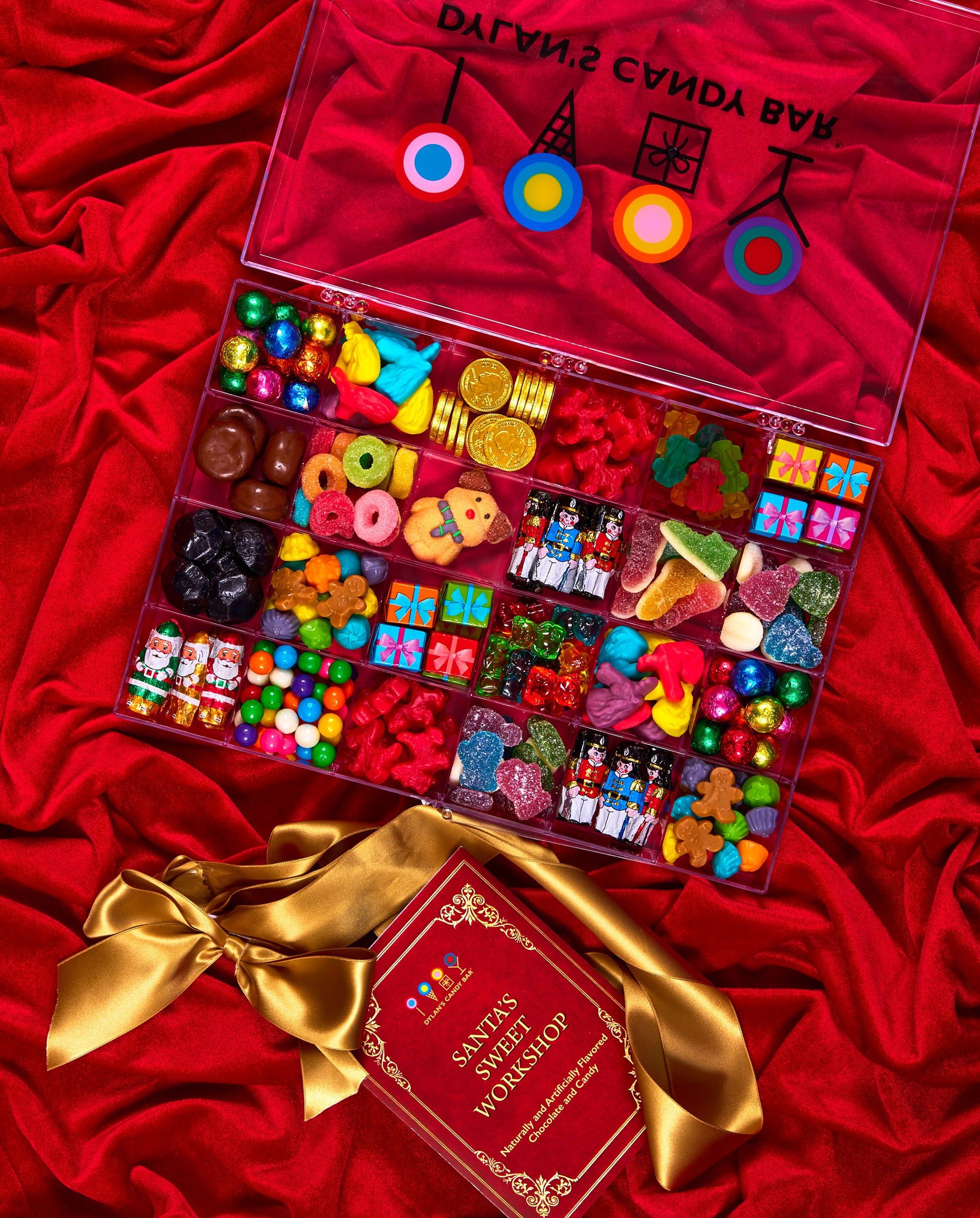 Unwrap the magic of Christmas with our Santa’s Sweet Workshop XL Tackle Box! The specially curated holiday and North Pole-themed candies are accompanied by a booklet hang tag that tells a sweet story written by our Founder and CEO Dylan Lauren. This spectacular selection of treats from every “candy food group” is perfect for the young-at-heart, decorating baked goods or creating confectionery charcuterie boards all season long.