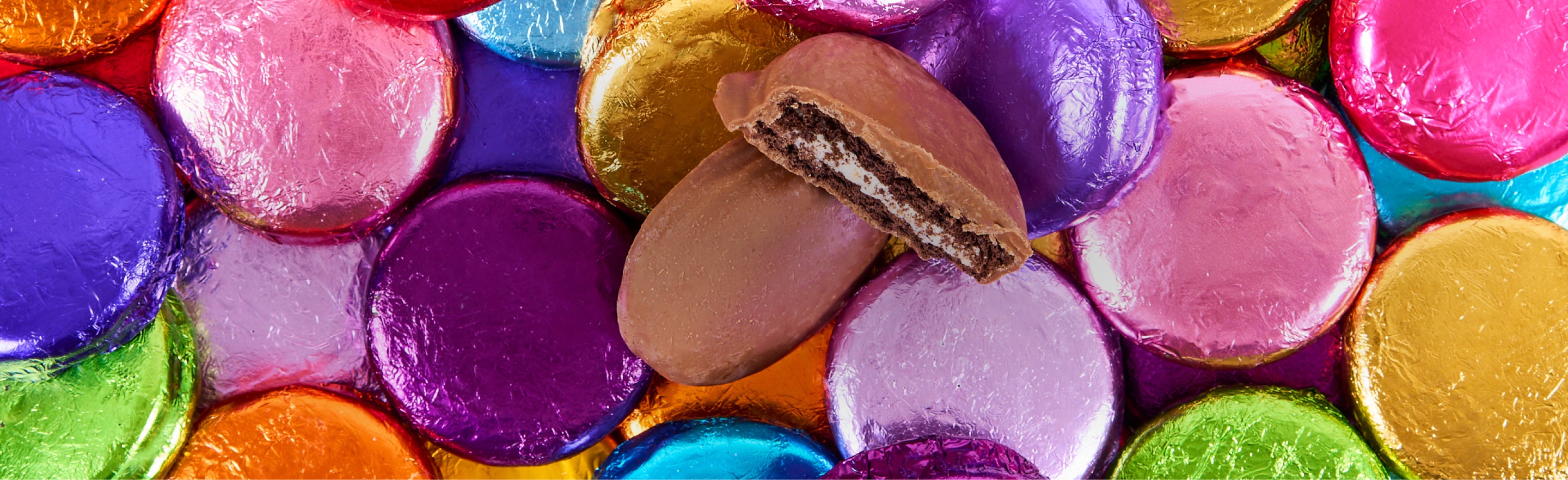 Rainbow Foiled Chocolate-Covered Sandwich Cookies
