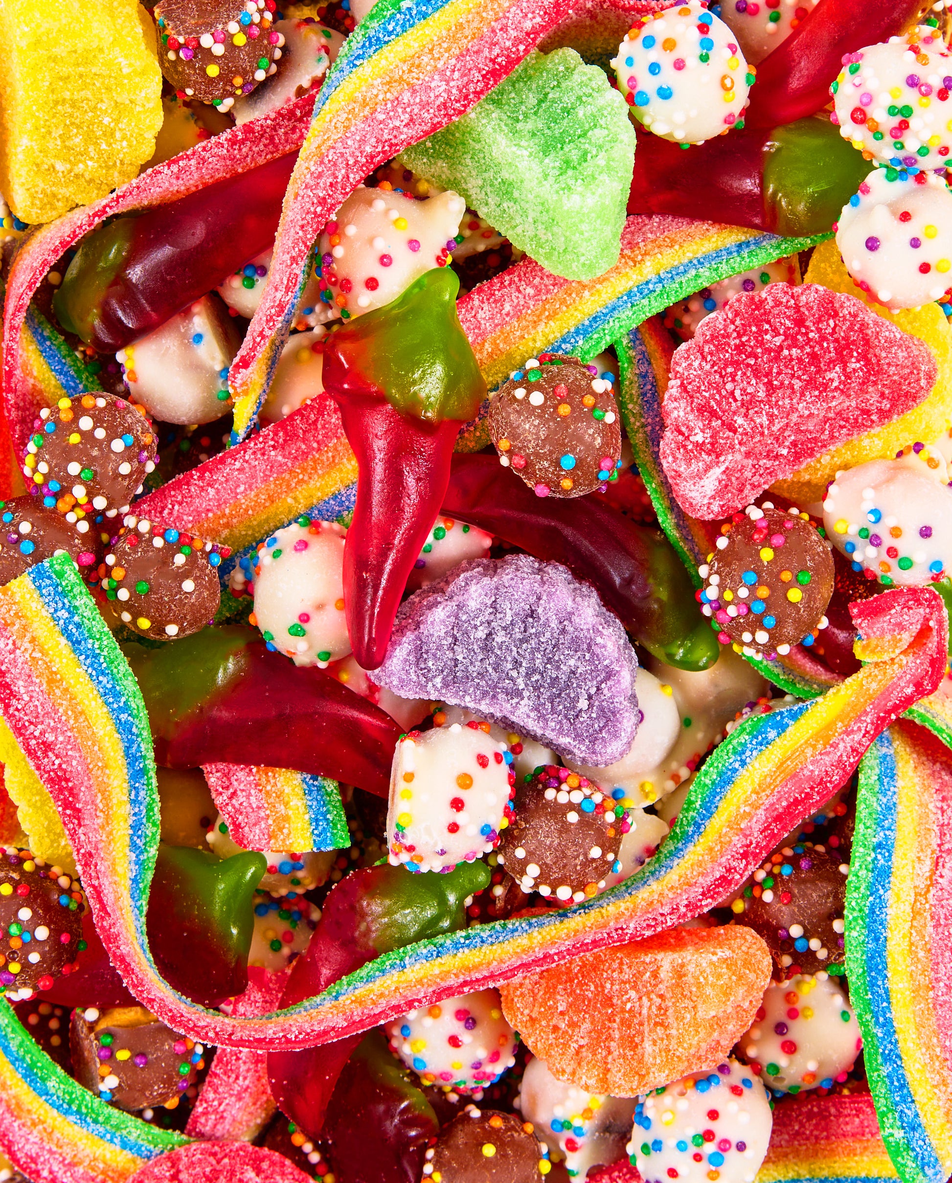 INGREDIENTS: Sugar, Corn Syrup, Cornstarch, Modified Cornstarch, Natural And Artificial Flavors, Red 40, Yellow 6, Yellow 5, Blue 1.
