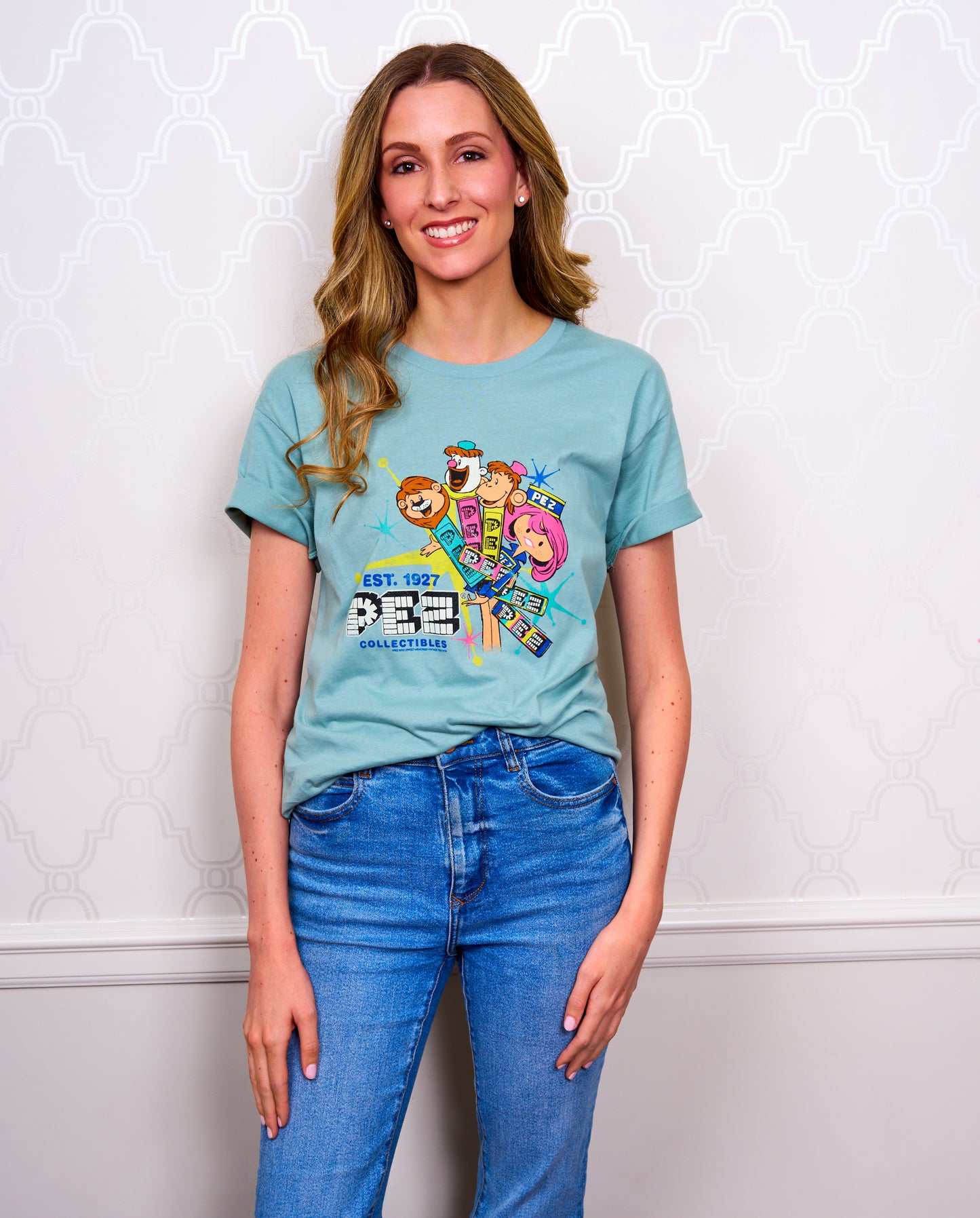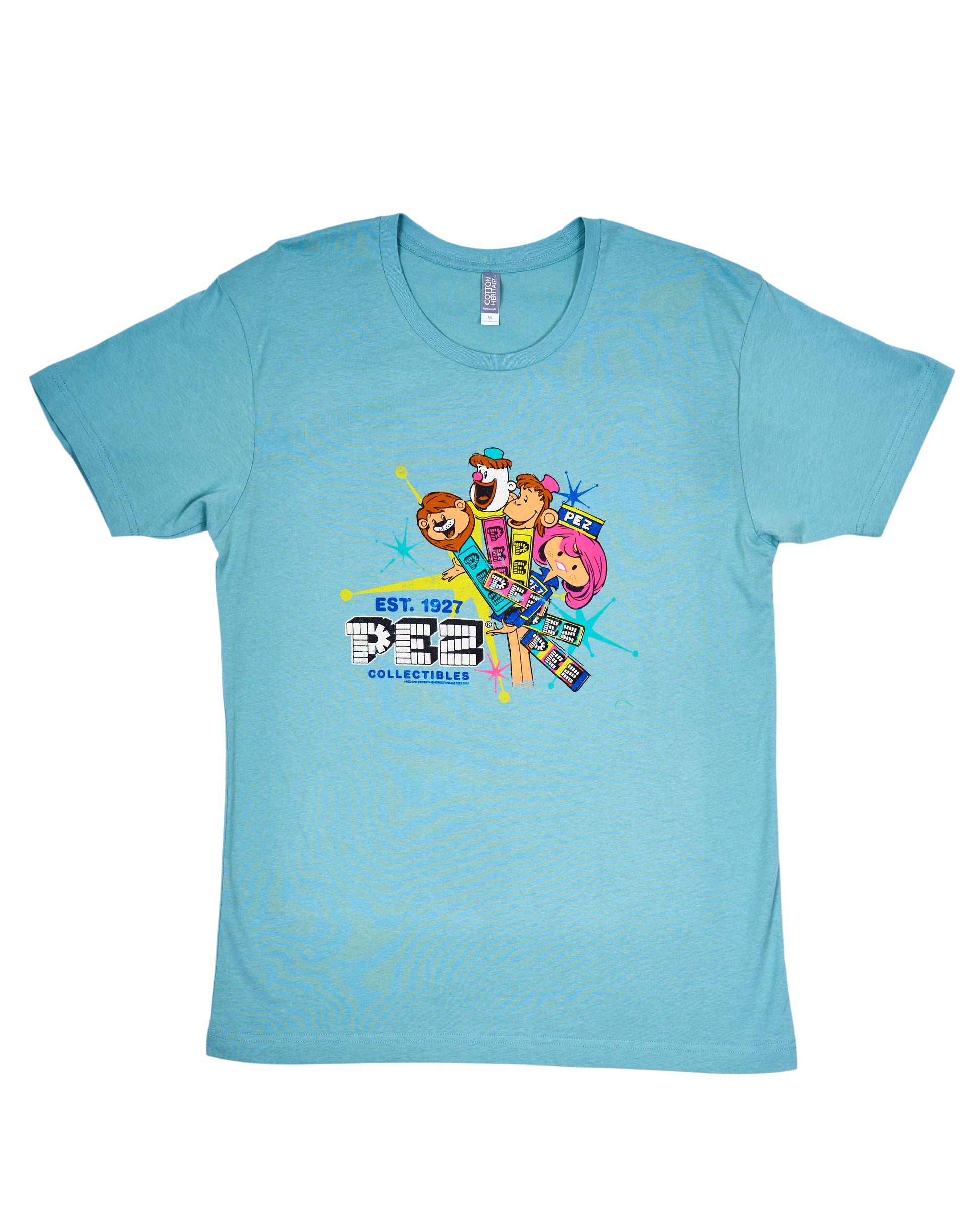 Add some sweetness to your wardrobe with this PEZ® Retro Collectibles T-Shirt! With a shirt color exclusive to Dylan’s Candy Bar, this tee features the iconic PEZ® logo and retro character dispensers. This timeless classic is perfect for nostalgia lovers, candy connoisseurs and anyone who appreciates old-school charm.