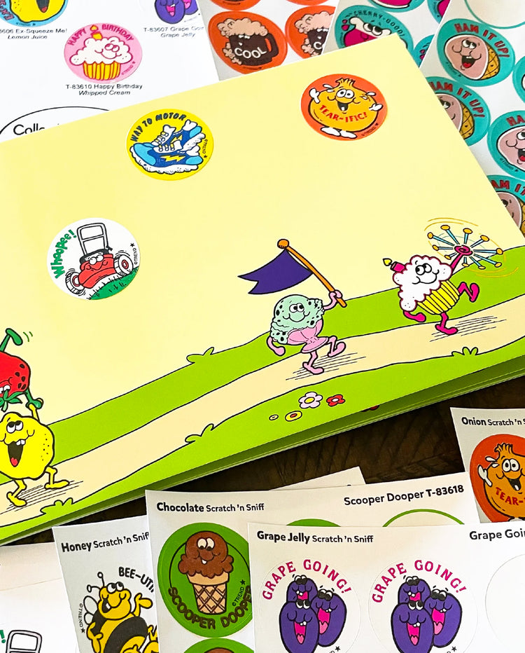 Remember the thrill of getting a scratch ‘n sniff sticker? Say hello to your childhood with scent-sational Stinky Stickers® and a “Stickers on Parade” Collector Album!