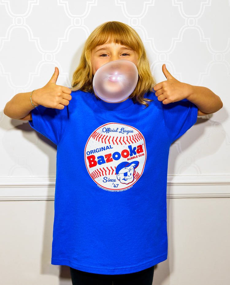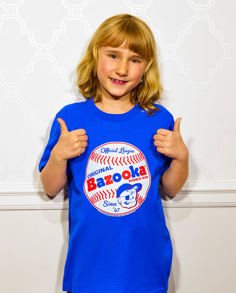 Add a pop of sweetness to your wardrobe with this retro Bazooka® Official League Baseball T-Shirt! With a shirt color exclusive to Dylan’s Candy Bar, this tee is a grand slam with its oversized baseball featuring the iconic Bazooka® logo and Bazooka Joe®. This timeless classic is perfect for baseball lovers, bubblegum connoisseurs and anyone who appreciates old-school charm.