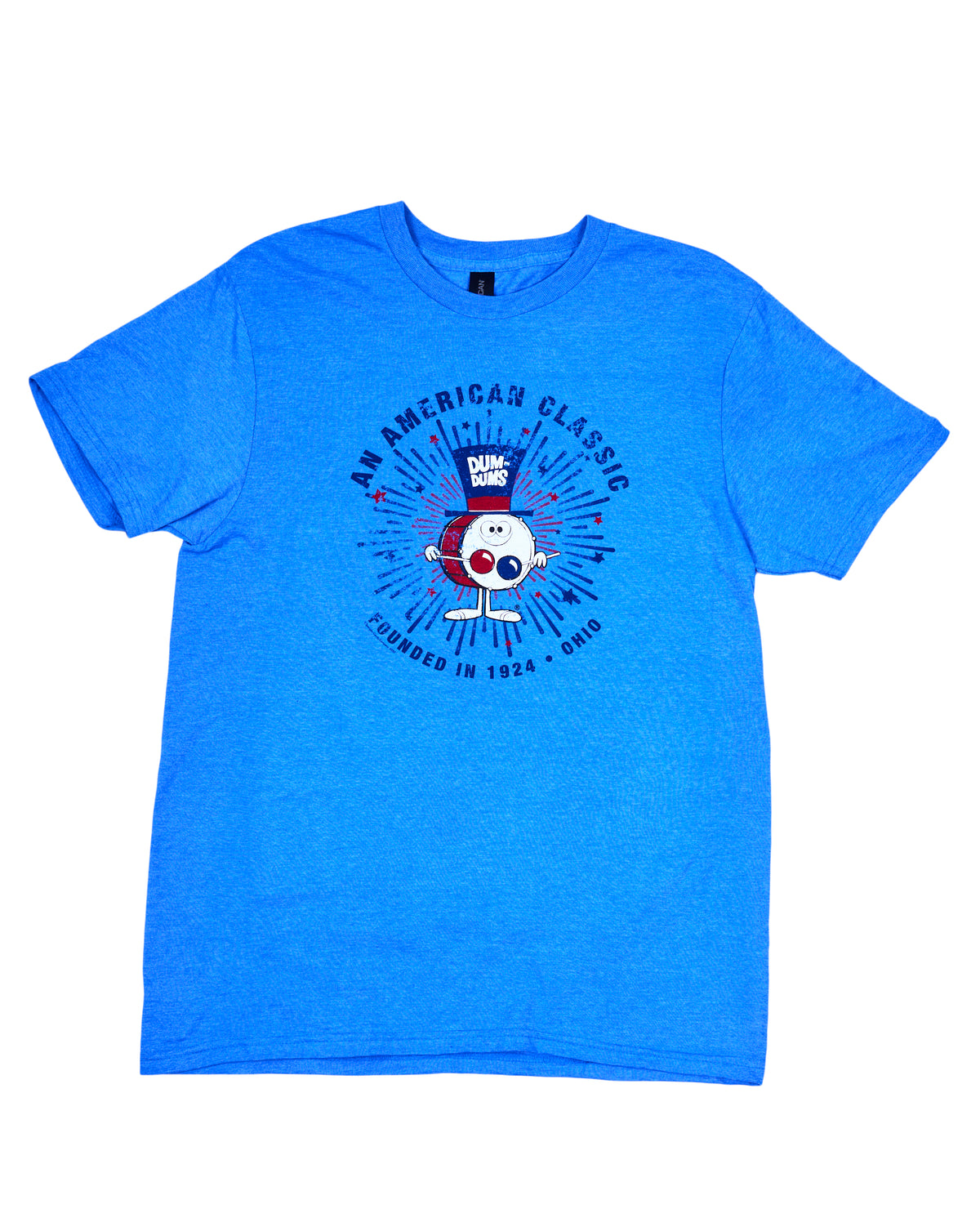 Add a pop of Americana and sweetness to your wardrobe with this retro Dum Dums® Star Spangler T-Shirt! With a shirt color exclusive to Dylan’s Candy Bar, this tee features the iconic “World’s Best Pop” Dum Dums® with a firework bursting behind it. This timeless classic is perfect for nostalgia lovers, lollipop connoisseurs and anyone who appreciates old-school charm.