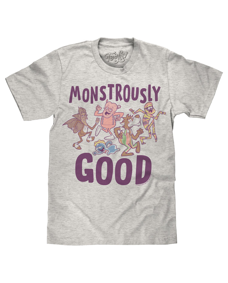 Sweeten up your wardrobe with the Monstrously Good Retro T-Shirt! It features iconic breakfast cartoon characters like Count Chocula®, Franken Berry®, Frute Brute®, Fruity Yummy Mummy® and Boo Berry® dancing along to their favorite song, as well as “Monstrously Good” text written across the soft-touch T-shirt. This timeless classic is a cereal-ously great gift for nostalgia lovers, foodies or anyone who appreciates old-school charm.