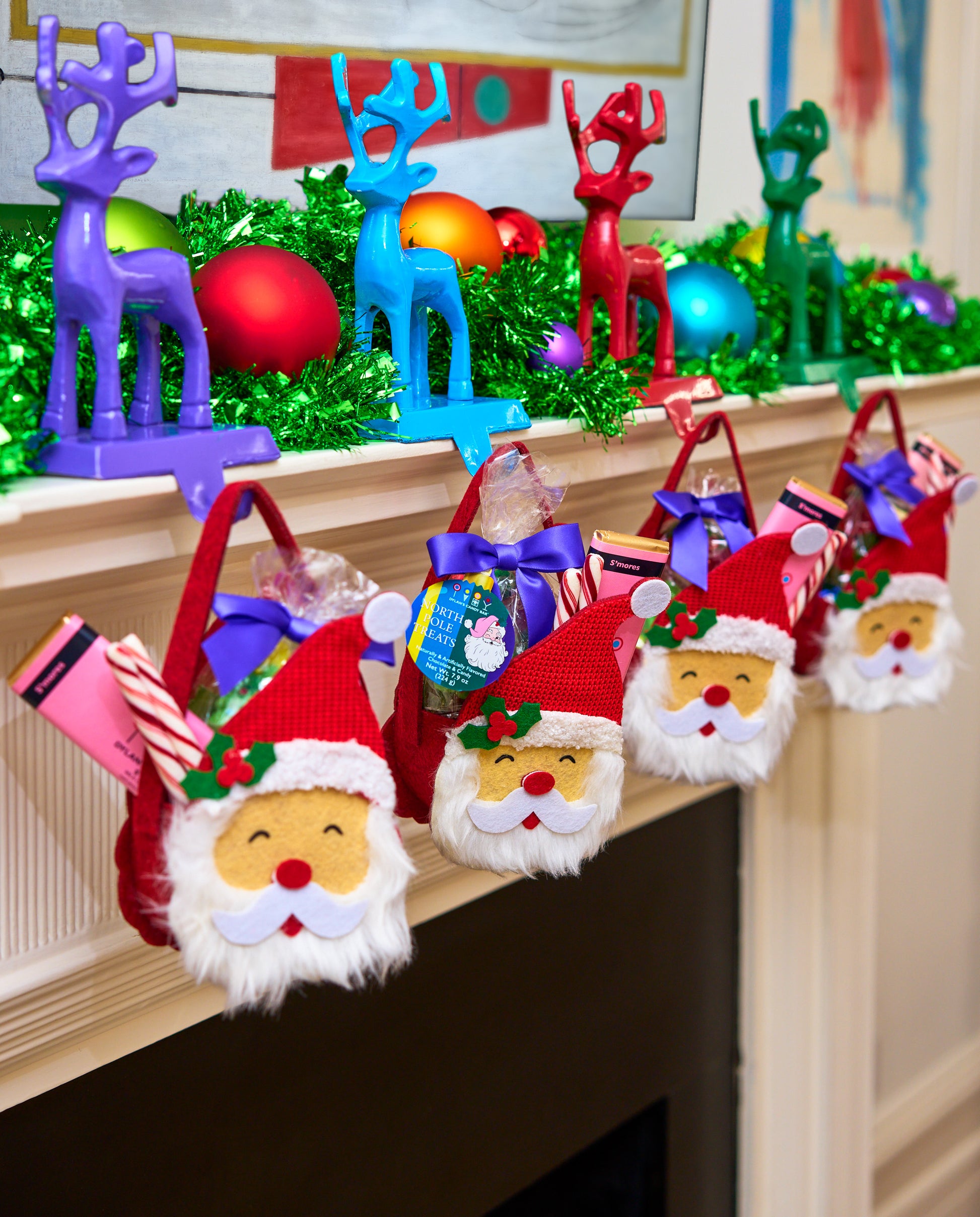 Have a basket full of cheer with our North Pole Treats! This Santa face-shaped felt bag is stuffed with a jolly mix of sweets from every “candy food group,” including a Milk Chocolate S’mores Bar. Remove the individual treats and add them to a Christmas-themed candy bowl or dessert charcuterie board, and then reuse the bag as additional decoration! This gift bag is a great hostess gift, Secret Santa present or party favor.