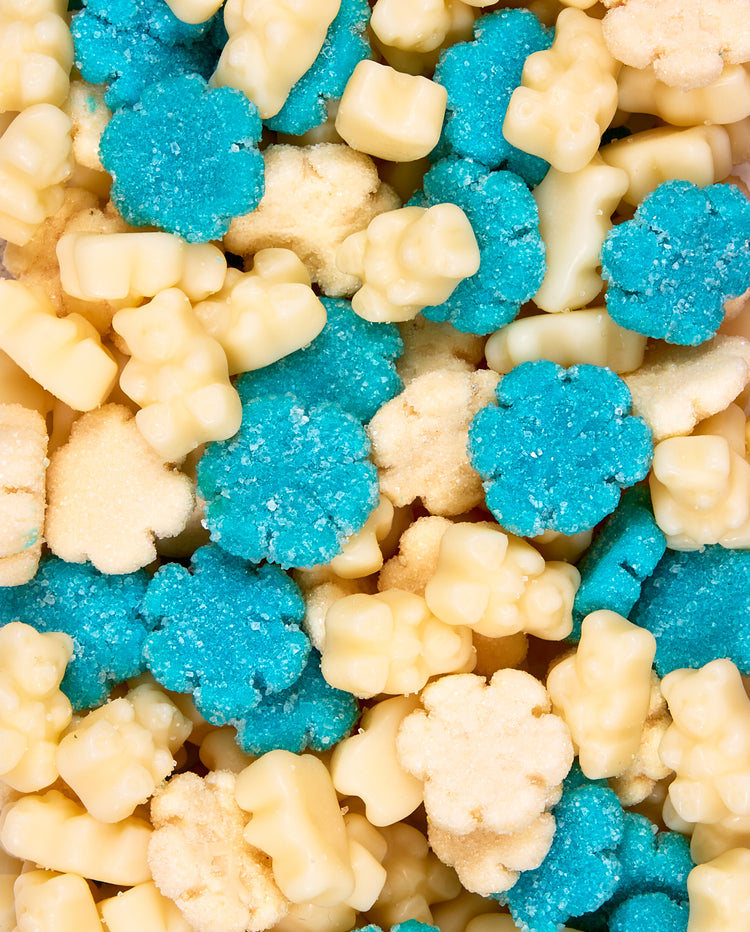 Jump into a fruity winter wonderland with Beary & Bright Sweets! The blue and white mix of gummy snowflakes and bears is a delicious treat. Encased in a green, yellow and purple-striped tube, it’s an excellent party favor or add the gummies to charcuterie boards, baked goods or desserts!