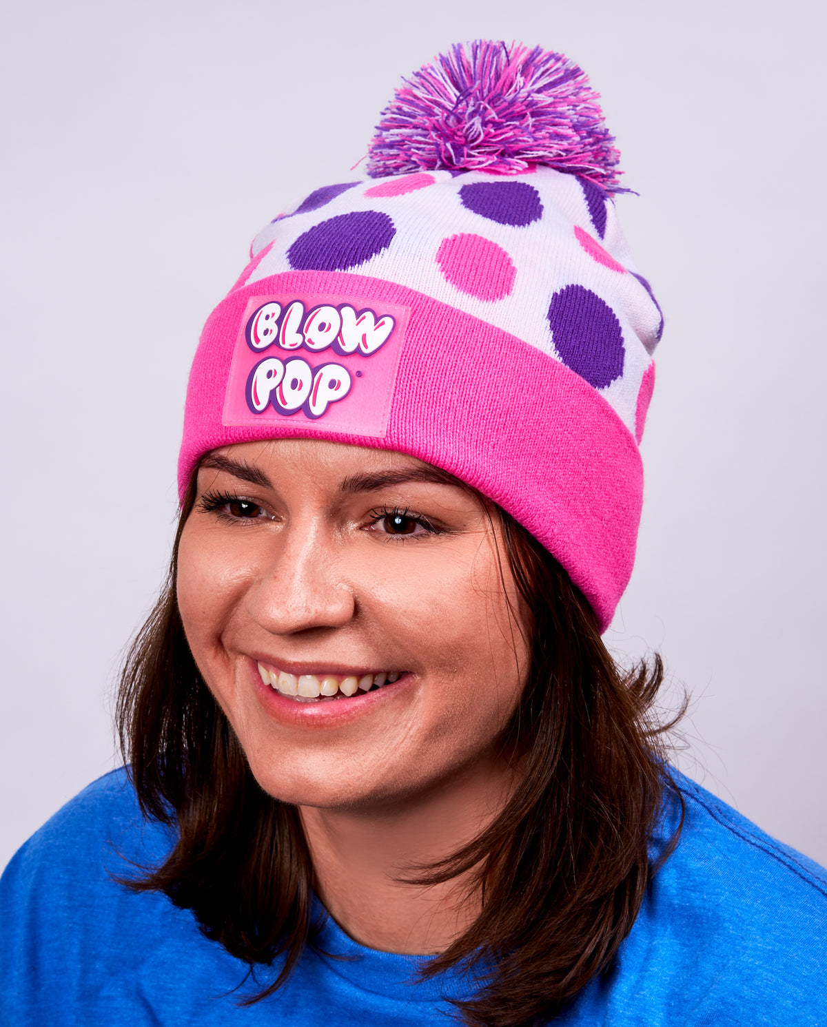 Add some sweet nostalgia to your wardrobe this winter with our Blow Pop® Knit Pom-Pom Beanie! This classic & comfortable cuffed beanie features the iconic Blow Pop® logo.