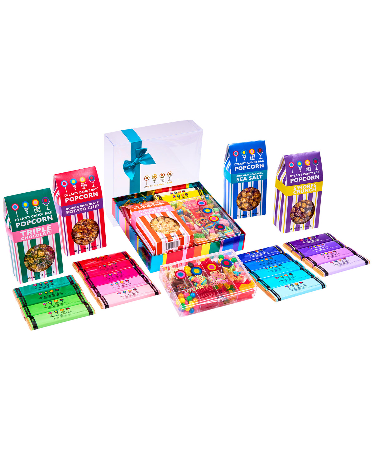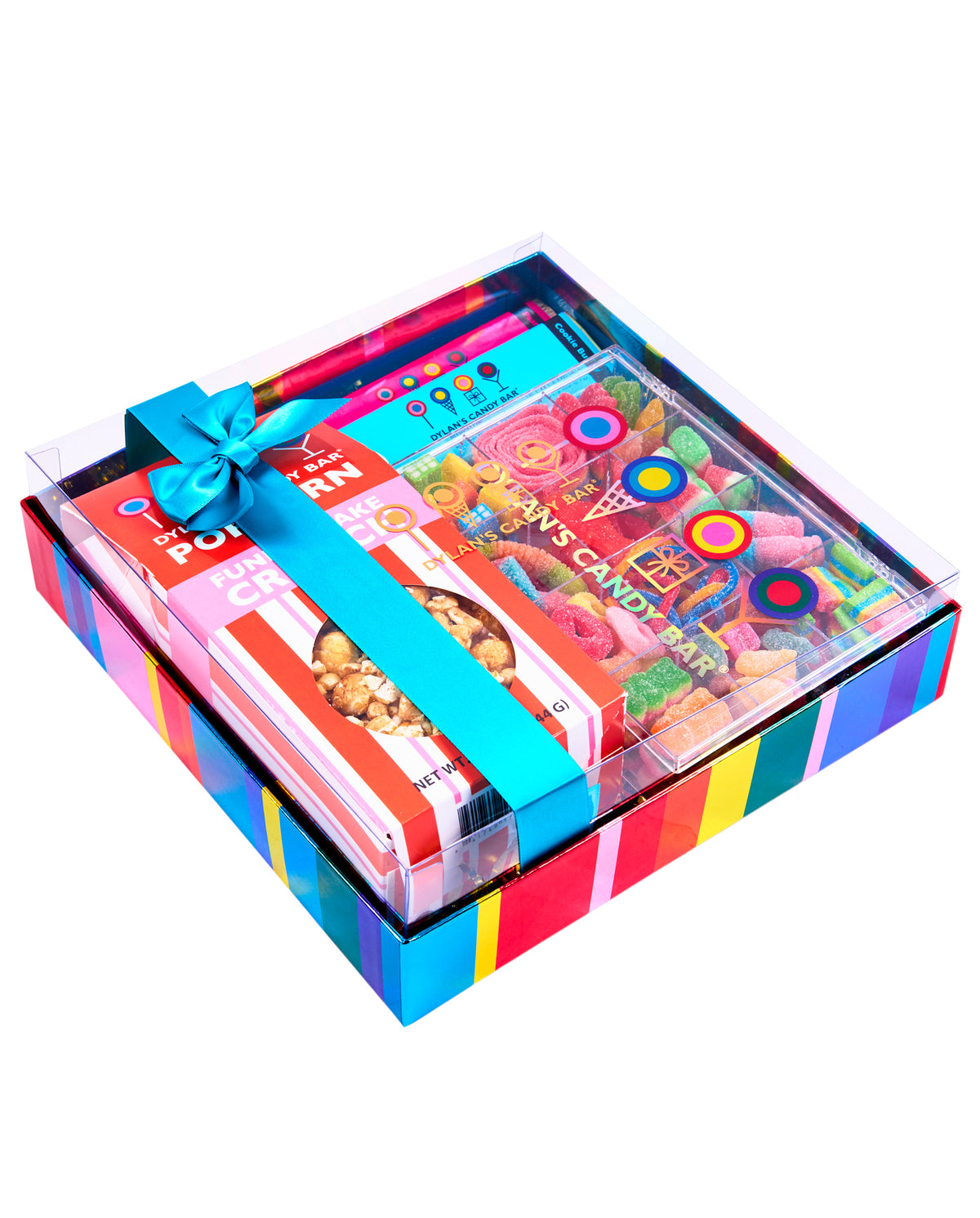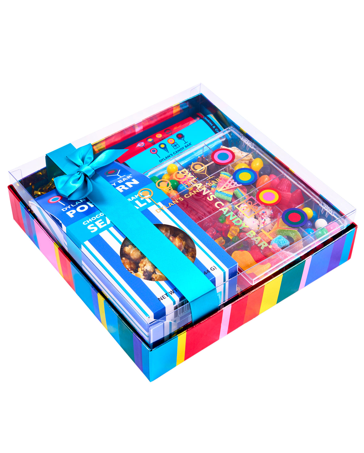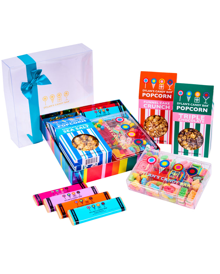 Including your choice of Popcorn, Tackle Box, and two Chocolate Bars, our Create Your Own Custom Treat Box comes filled with four of our signature mouthwatering treats! Stylishly wrapped and ready to be gifted in a Dylan’s Candy Bar gift box, this picturesque, personalized present is sure to delight any candy lover.