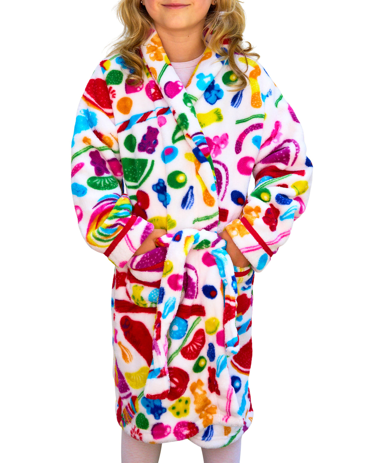 This super soft and plush robe with our signature candy spill pattern is a must for that cozy day.