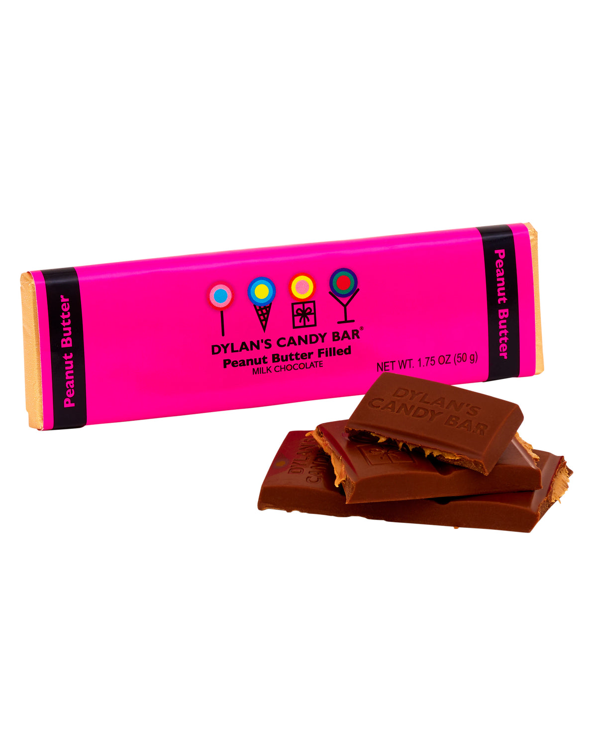The Milk Chocolate Peanut Butter-Filled Bar combines milk chocolate with a creamy peanut butter filling for a velvety bite.