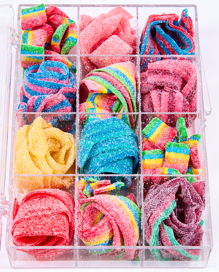 If you love Sour Belts, you’ll enjoy exploring the variety of flavors and colors in this tangy and tart treat! Once you’ve sampled the sour sugary strips, you can use the 12-compartment vessel as an organizer or for sour refills.