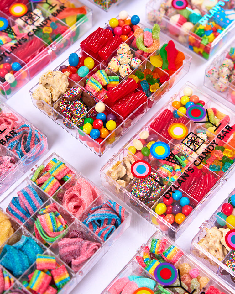 Our Tackle Boxes are specially curated with popular sweets from each food group – candy, chocolate, gummy, gum and sour – in a variety of fun themes, shapes, colors, textures and flavors. They’re a delicious gift for the candy connoisseur and even function like a dessert charcuterie board for a special event. Once the treats have all been eaten, these 12-compartment vessels work great as desk organizers.