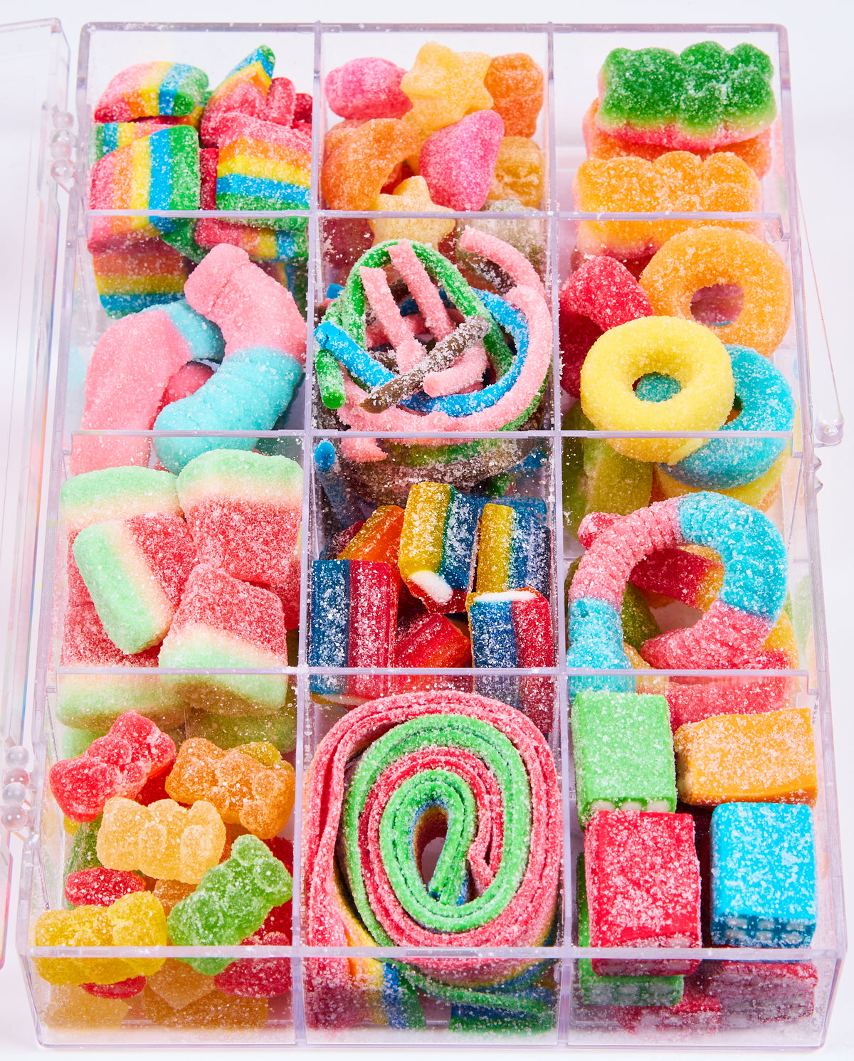 Our Tackle Boxes are specially curated with popular sweets from each food group – candy, chocolate, gummy, gum and sour – in a variety of fun themes, shapes, colors, textures and flavors. They’re a delicious gift for the candy connoisseur and even function like a dessert charcuterie board for a special event. Once the treats have all been eaten, these 12-compartment vessels work great as desk organizers.