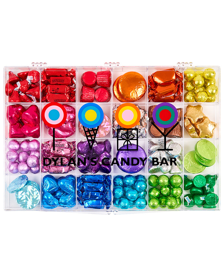 The most glamorous tackle box in our collection resembles a stunning treasure chest of jewel-like candies and chocolates in every shade of the rainbow. This luxe gift will definitely impress the most sophisticated and fashionable.