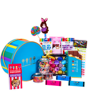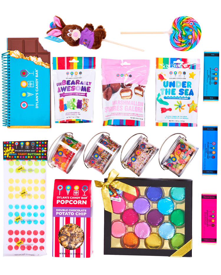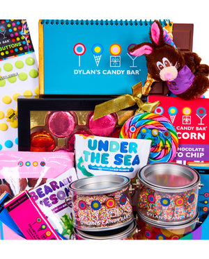 A show-stopping gift basket in a Dylan’s Candy Bar® turquoise hat box that’s brimming with a wide array of our most popular treats that reign supreme!