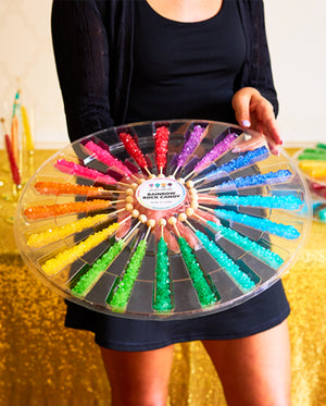 Rock the rainbow with this shimmery and sweet palette of 20 glittering gemstones featuring ten delicious flavors, including blue raspberry, green apple, pineapple, orange, blue cotton candy, pink cotton candy, cherry, grape, watermelon and blueberry. Stir them into candy cocktails for an extra pop of color and sweetness.